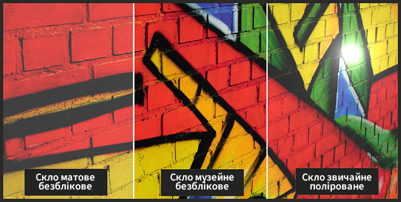 Museum Glass: Скло музейної якості з фільтром UV 99%, що мінімізує відблиски та забезпечує виняткову якість зображення, покращуючи кольори, яскравість та контраст.